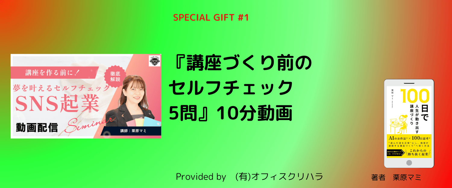 プレゼント提供者である「(有)オフィスクリハラ」「神さま繁盛堂」「いえラボCOMPASS」「玉音」「のび学び」「羽原和則」