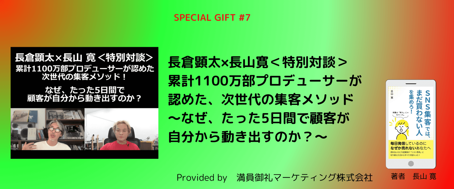 返信メールにて9大特典のダウンロードのURLをお知らせしています。